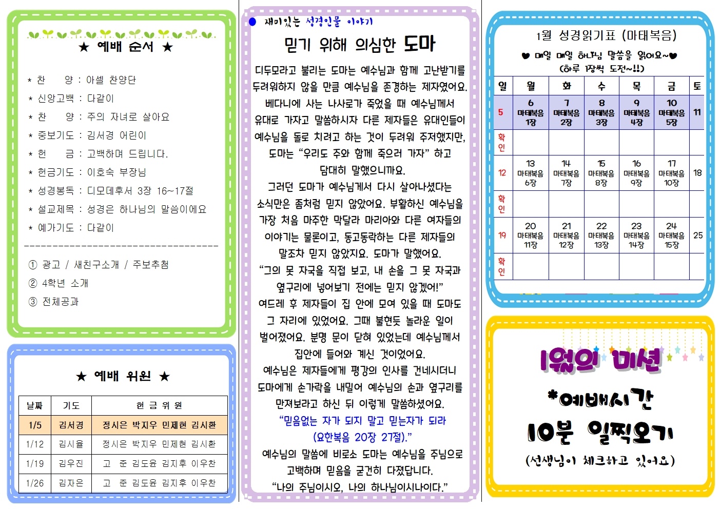 헌금 위원 : 정시은 박지우 민제현 김시환 어린이