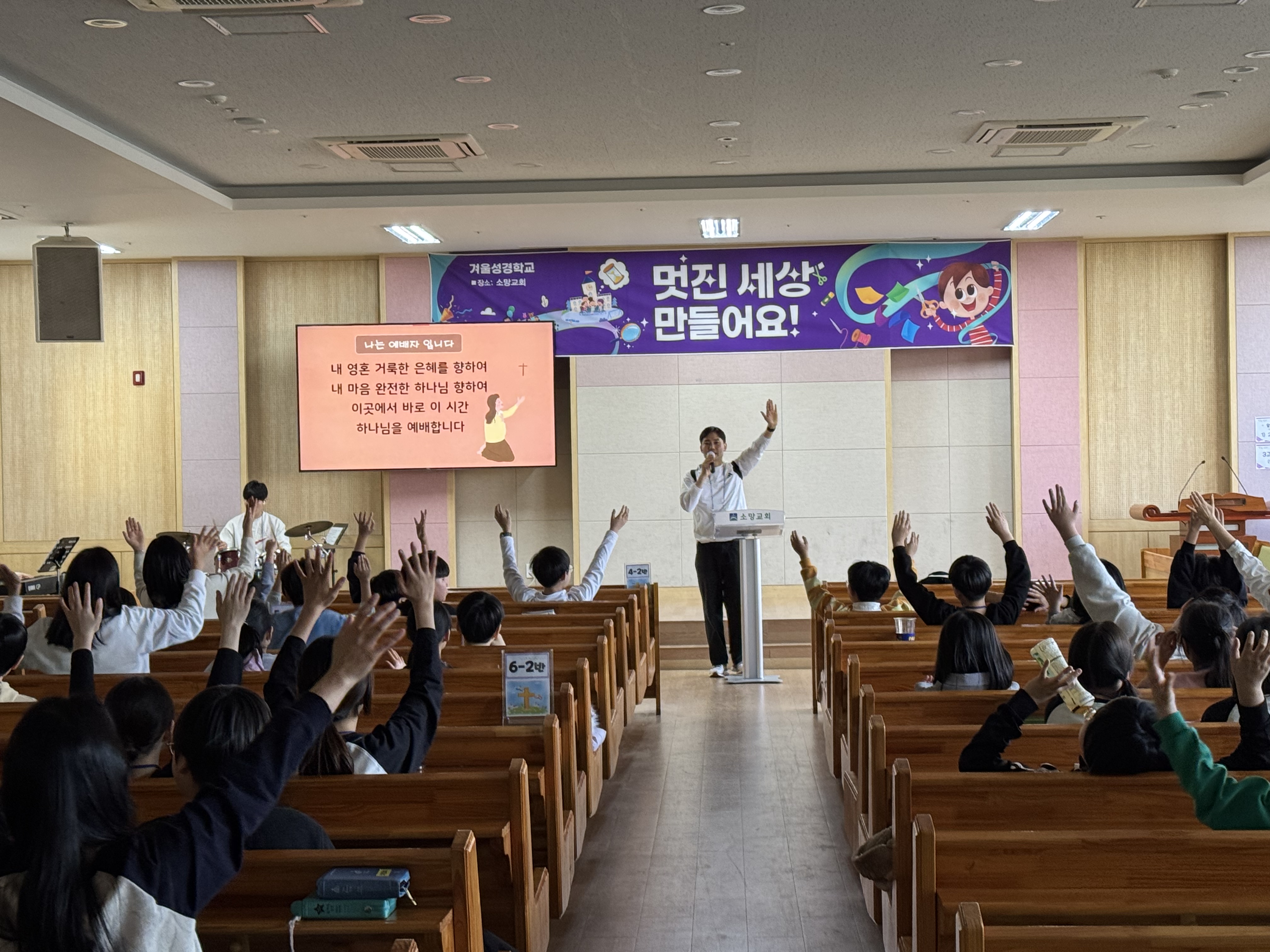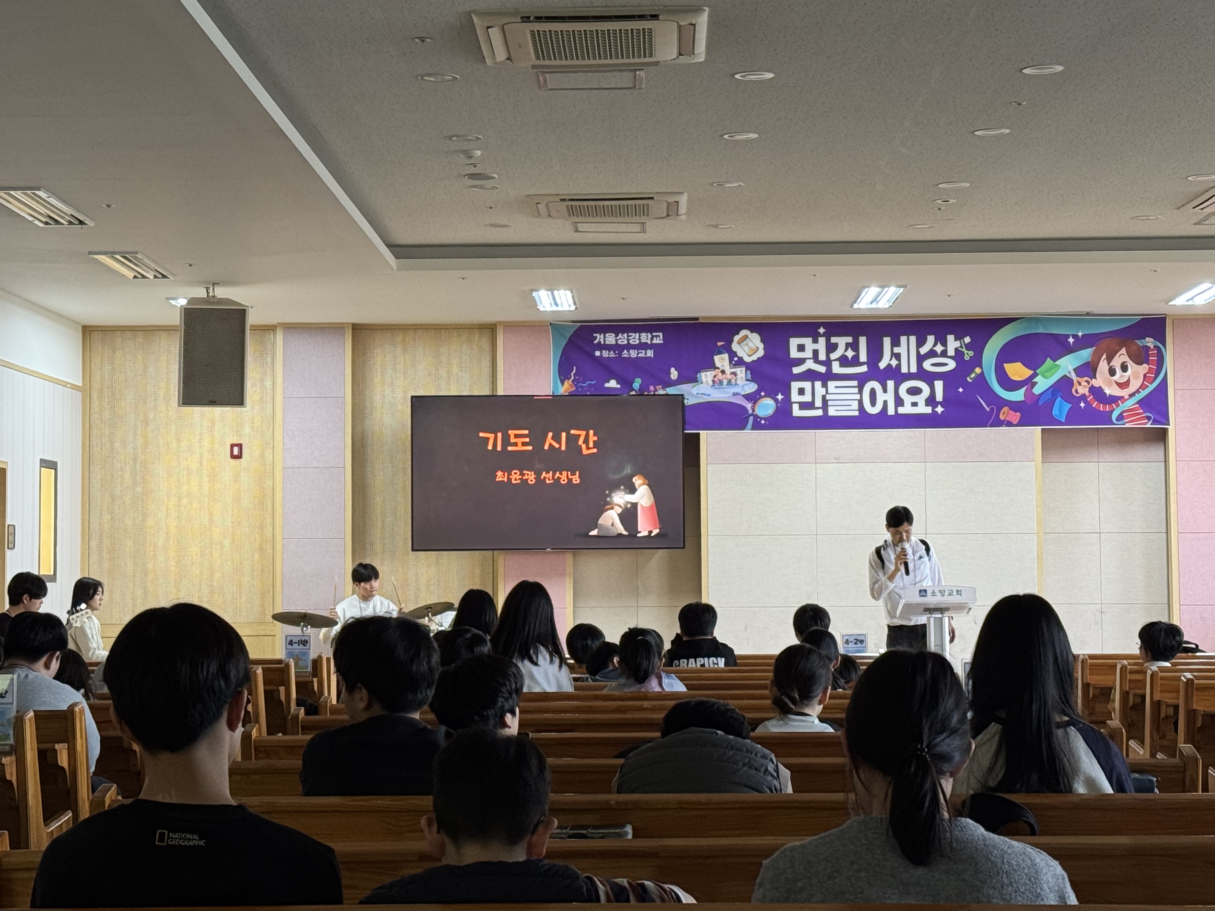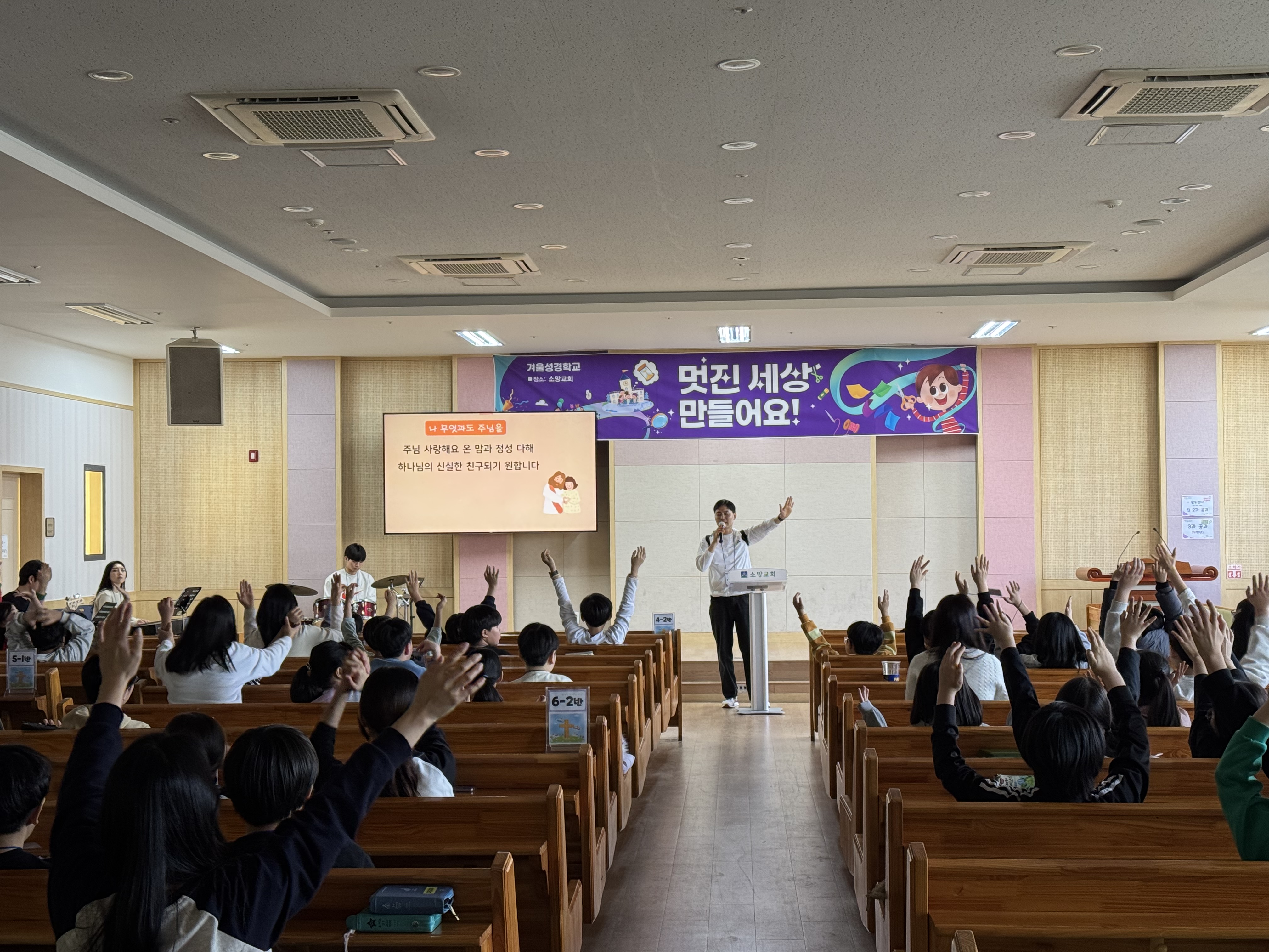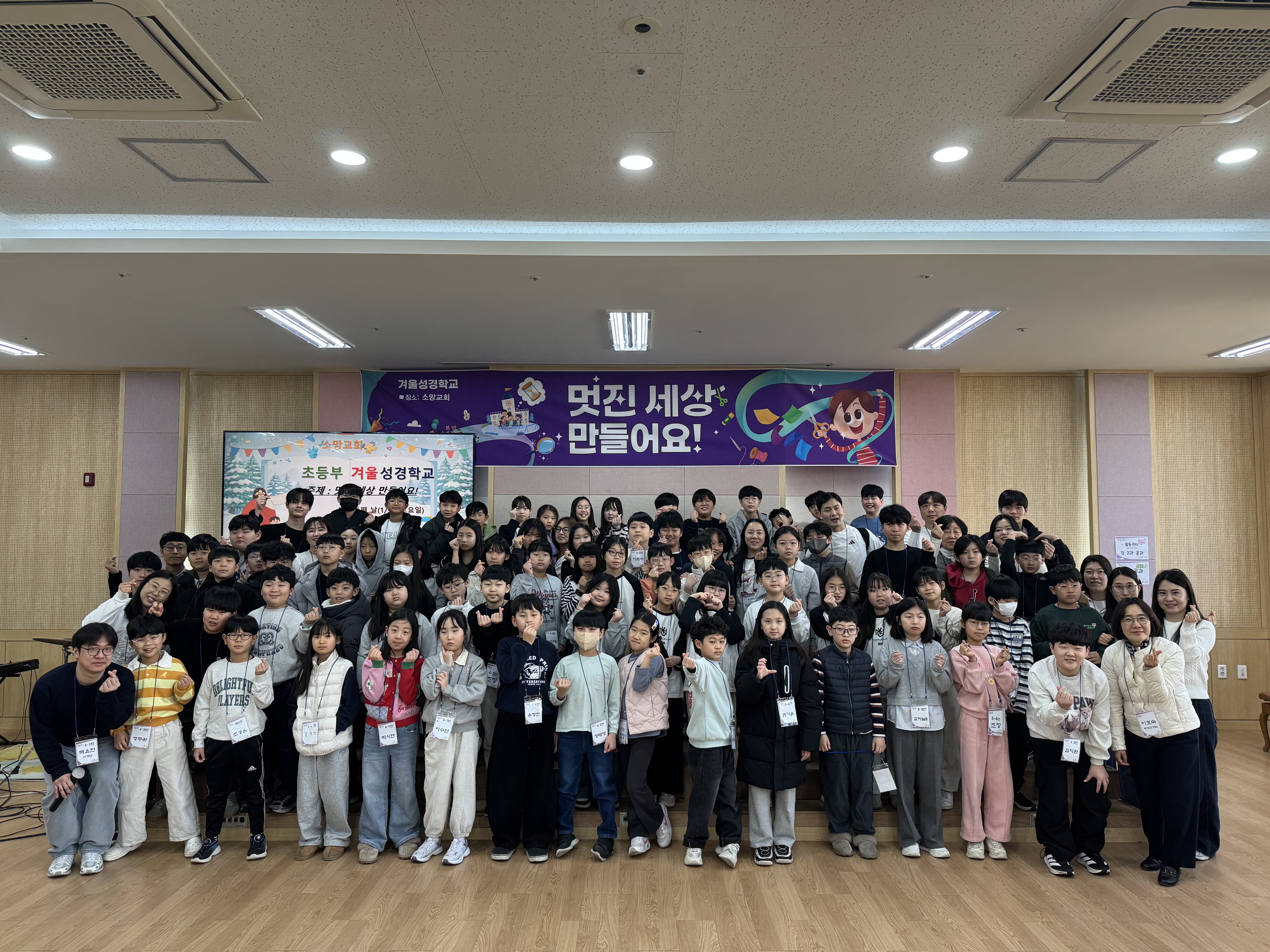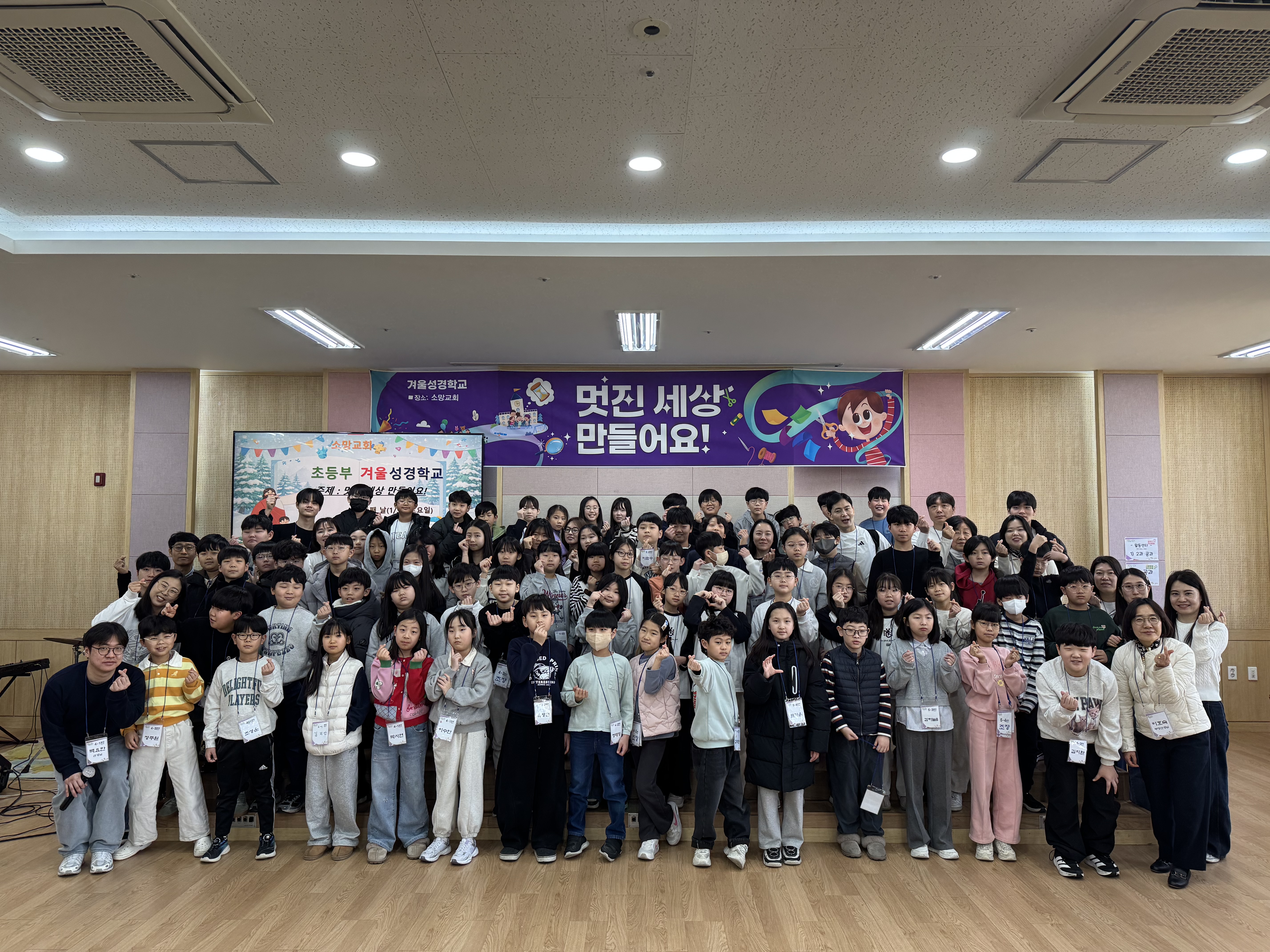 2026년 초등부 겨울 성경학교 둘째날 단체사진과 기도회